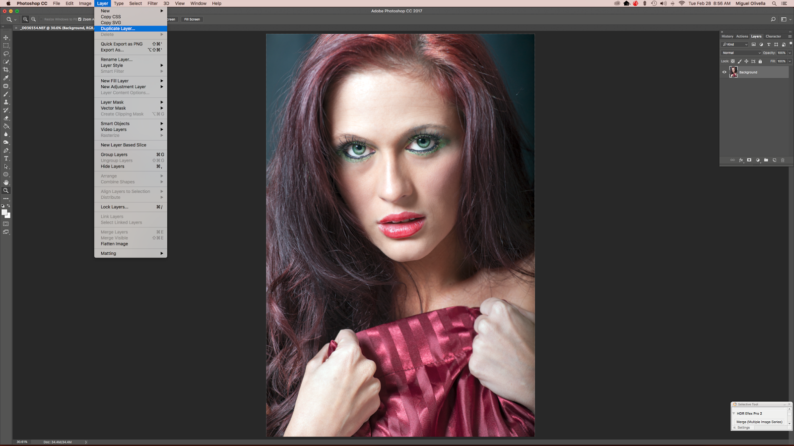 I've opened the RAW image in Photoshop after running it through Camera Raw and made my basic adjustments.