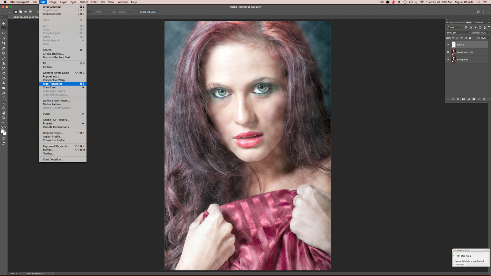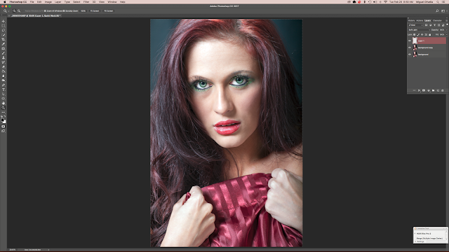 Since it's a portrait/beauty shot, I've touched up the skin and put the image through my usual beauty/portrait corrections. Now, for the smoke.